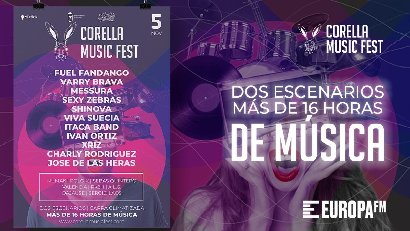 Fin de semana de fiesta en Navarra. El Corella Music Fest se celebra este sábado 5 de noviembre en la localidad del sur de Navarra con un cartel de lujo y Europa FM como emisora oficial.