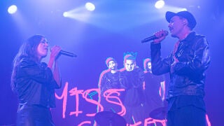 Pocos minutos después de su primera aparición, Alberto Jiménez vuelve al escenario acompañado de sus compañeros de Miss Caffeina para cerrar el concierto con energía y con una reivindicación contundente: "No quiero dejar de poner el foco en la salud mental porque pueden convertirse en trends de un tiempo y luego desaparecer, por eso hay que seguir investigando y colaborando", pide el vocalista.