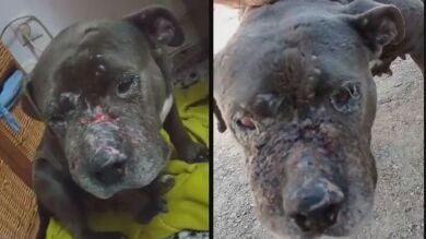 La emotiva historia de Cata: la perra robada para peleas que ha aparecido con la cara destrozada