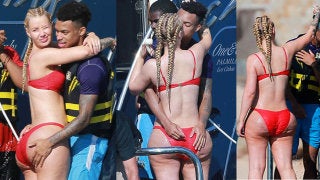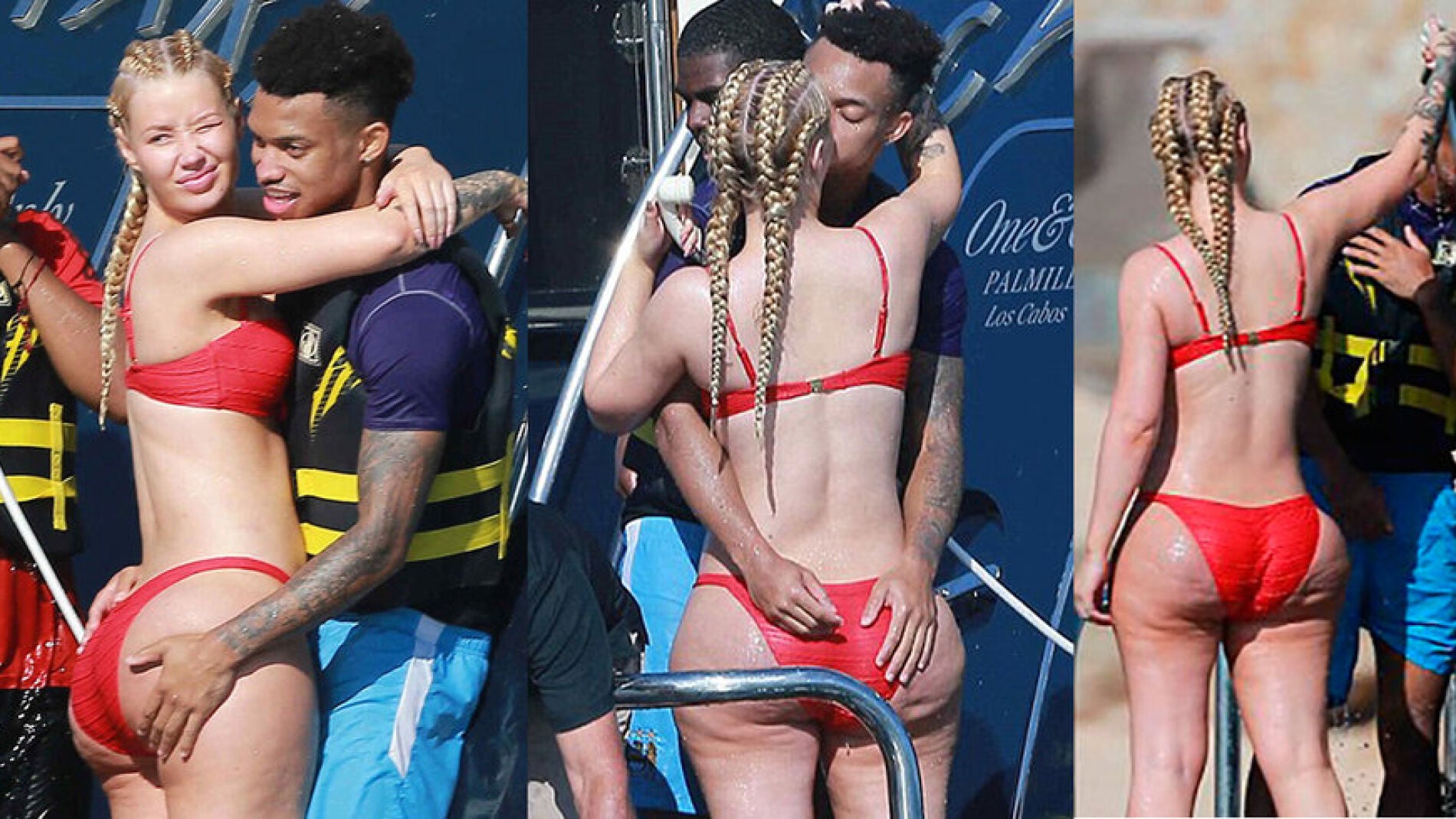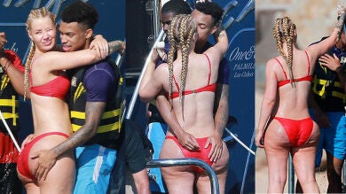 Pero esto no queda aquí. Los paparazzis también han captado a la pareja en actitudes muy cariñosas (obvio, son novios) mientras disfrutaban de su día a bordo de la embarcación. Iggy mostraba su cuerpazo lleno de curvas con un diminuto bikini rojo mostrando sin complejo alguno su celulitis.