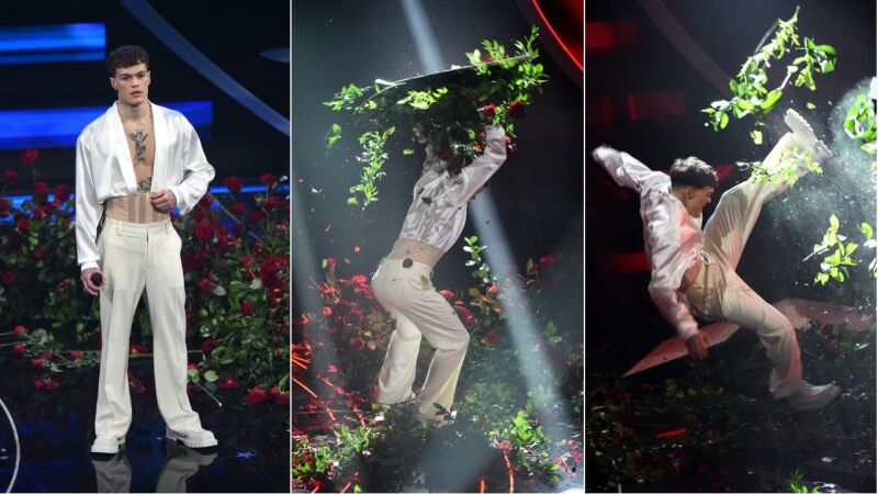 El artista, que representó a Italia en el festival de Eurovisión 2022 junto a Mahmood, tenía que interpretar su canción L' Isola delle rosse junto a su banda de músicos. Sin embargo, un fallo técnico nada más comenzar la actuación provocó un arrebato en el artista, que cargó contra el attrezo que acompañaba su puesta en escena.