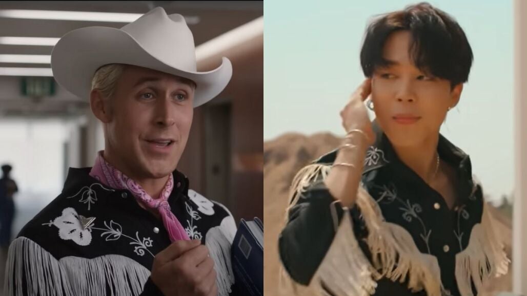 En una parte del filme, Ken lleva un traje de vaquero negro muy característico por las flores bordadas y los flecos blancos que cuelgan. Es bastante llamativo y no ha pasado mucho tiempo hasta que se ha encontrado el increíble parecido con una camisa que lleva Jimin, cantante de BTS.