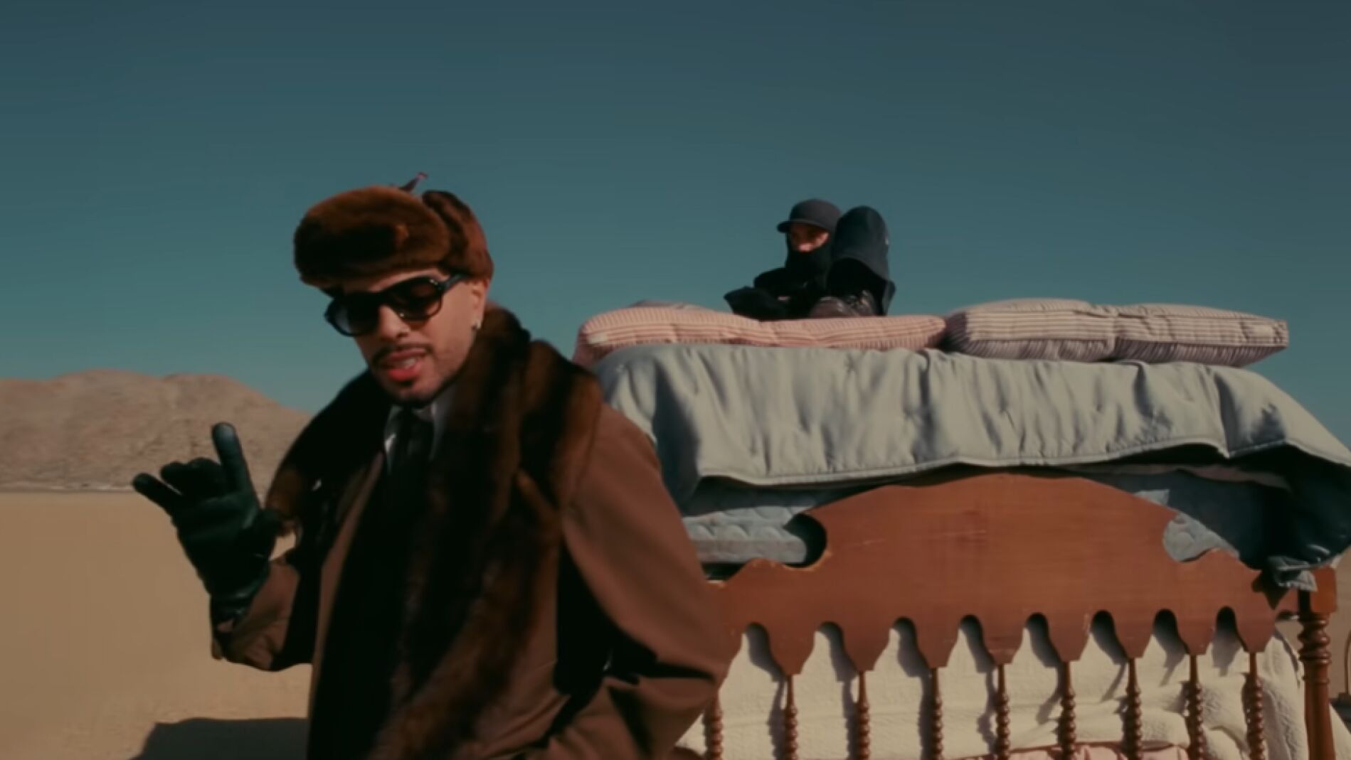 El videoclip muestra a los tres intérpretes cantándole a la cámara con outfits variados y en mitad de un valle rodeado de altas montañas. Los cantantes urbanos se reparten los versos en una performance que transcurre entre una cabina de teléfono en mitad del páramos y una cama con muchos colchones Y esto último es lo que inevitablemente recuerda a la interpretación de Rosalía de La Perla en el programa de The Tonight Show Starring Jimmy Fallon.