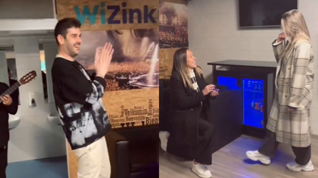 La jugadora del Atleti se ha compinchado con el cantante para pedirle matrimonio a su chica, Cristina Vicente, antes de su concierto en el Wizink Center de Madrid.