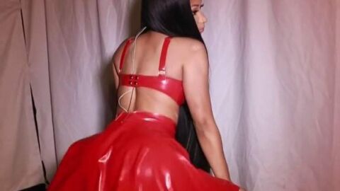 Nicki Minaj se marca un voluptuoso twerking, enfundada en un vestido de cuero rojo, para celebrar su récord histórico en las listas de éxitos, ¡llegando a superar a la mismísima Aretha Franklin!