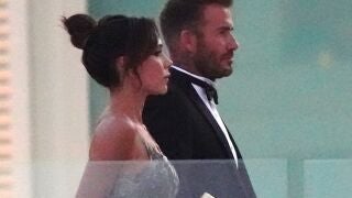 En las fotos se ve a la Spice Girl entrando junto a su marido, el exfutbolitsa David Beckham, en el salón nupcial. El vestido de tirantes y con bordados que bajan desde el pecho hasta el inicio de la cadera enmarcaban su figura y la llegada de los padres del novio al altar parecía una desfile de moda más que una boda.