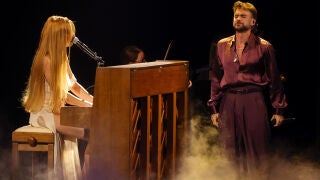 Belén Aguilera había avisado en la alfombra roja que su número musical iba a ser "un inicio de tirar la rueda otra vez" y así ha sido. La cantante ha recuperado a La chica del piano para interpretar Si te vas, la famosa canción de Extremoduro a la que se unió poco después el cantante de Alcázar de San Juan que emocionó al público con su voz rasgada.