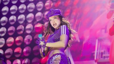 Con su mítico gorro, un conjunto morado y un micrófono de brillos, Emilia pisa el Movistar Arena con una actitud atrevida, sensual y a ratos chulesca. Se sabe una estrella, y como tal baila como si fuera una más de su cuerpo de baile mientras suena el primer tema de la noche, Exclusive.mp3: "Los nene' hipnotizados con su sex appeal", canta.