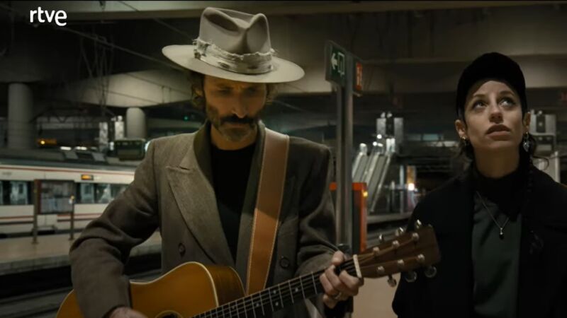 Los cantautores se unen para cantar Yo me bajo en Atocha, de Joaquín Sabina, en un videoclip dirigido por Fernando León de Aranoa en la estación madrileña, que fue uno de los objetivos del atentado terrorista.