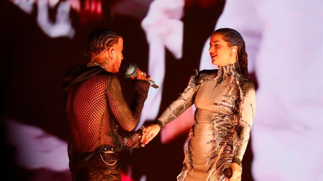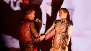 Rosalía y Rauw Alejandro se subieron juntos al escenario este sábado para cantar por primera vez en directo Beso y Vampiros, dos de los tres temas de su EP RЯ.