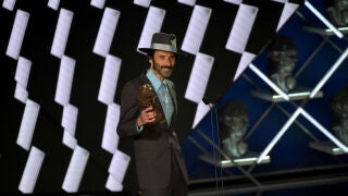 "En unas horas es su cumpleaños. Es el cumpleaños de Joaquín Sabina. Le quiero decir que 'Te quiero mucho, flaco. Feliz cumpleaños. Aquí tienes un regalo cojonudo que te llevo a casa'. También quería compartir este premio con mi amigo Fernando León de Aranoa y también con mi mamá que le han dado el alta del hospital hace unos días y está ya en casita. Te quiero mucho, mami", ha añadido el cantante, que horas después de la gala compartió la imagen del Goya en Instagram con un guiño también a Fernando León de Aranoa.