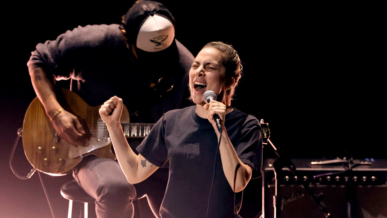 Y lo hizo con una nueva sorpresa. Frente al recargado look con el que se presentó en la alfombra roja, la artista optó por una imagen completamente opuesta a la hora de interpretar Hold my hand.