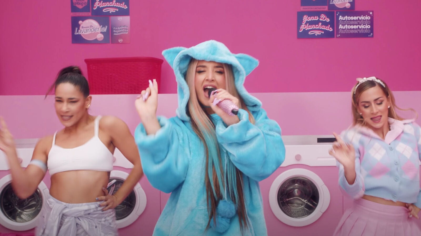 Lola Índigo transforma una lavandería tradicional en un espacio 100% pop para crear esta versión en directo de Tamagochi. El objetivo era crear un mundo imaginario del que Lola y sus bailarinas se apropiaran por completo, con una estética vibrante que generase un set único lleno de buen rollo.