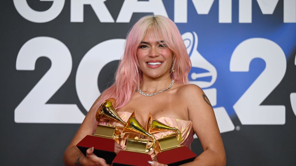 Karol G no podía evitar las lágrimas sobre el escenario al recoger su tercer Latin Grammy de la noche. Mañana será Bonito es el Mejor Álbum del Año, pero también ha triunfado en categoría Urbana y junto a Shakira se ha llevado la Mejor Interpretación gracias a TQG. "No me puedo creer que el mejor álbum de música urbana lo tenga una chica", señaló sobre ese disco que escribió mientras atravesaba el desamor de su ruptura con el cantante Annuel AA.