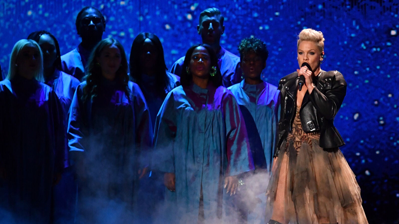 Uno de los tributos más aclamados del show fue el protagonizado por la cantante Pink y los miembros en activo de la banda Queen, con Brian May a la cabeza.