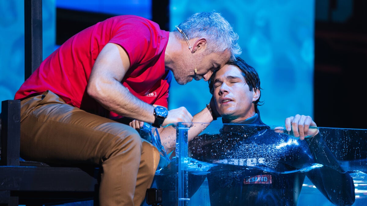 El concursante, que ha estado entrenando con tos y fiebre, se ha metido de lleno en el tanque de agua del plató con la ayuda y el apoyo de su mentor Juandi, que ha ido pautándole la prueba en cada momento para asegurarse que todo salía de la mejor manera posible.