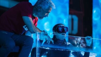 Sergio Reguilón recibe a Marta Díaz tras luchar contra sí misma en la prueba de apnea