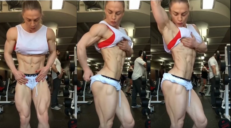 En el vídeo vemos a una mujer en una sala de gimnasio como muestra su musculado cuerpo del que presume estar cerca del 0% de grasa corporal. Podemos ver sus abdominales completamente marcadas, así como todos los músculos excesivamente desarrolados en sus brazos y piernas.