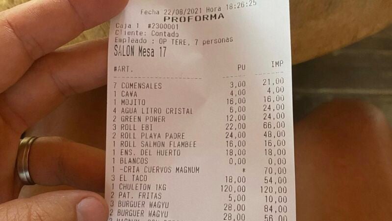 Hace unas semanas un cliente viralizó el ticket de un restaurante de Marbella quejándose de que el camarero le había pedido propina aunque ya habían gastado en la cena 4.098 euros.